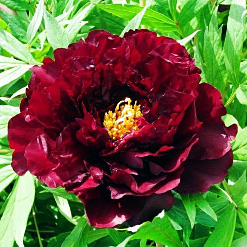 Великолепный пион Као древовидный способен достичь высоты 120-150 см. Его крупные густомахровые соцветия диаметром 20-25 см с желтой сердцевиной поражают удивительными оттенками рубина, пурпура и коралла. Обильно цветет в мае 8-15 дней, окутывая сад легким пряным ароматом.